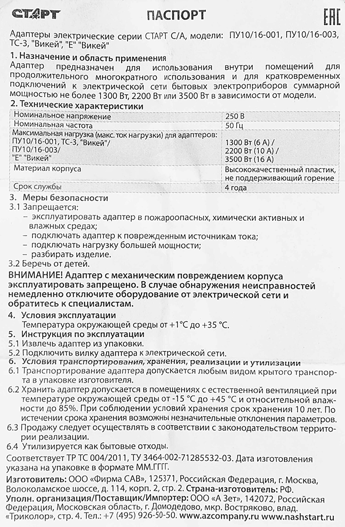 | Модель продукта | Разветвитель СТАРТ ТС-3 "Викей" |