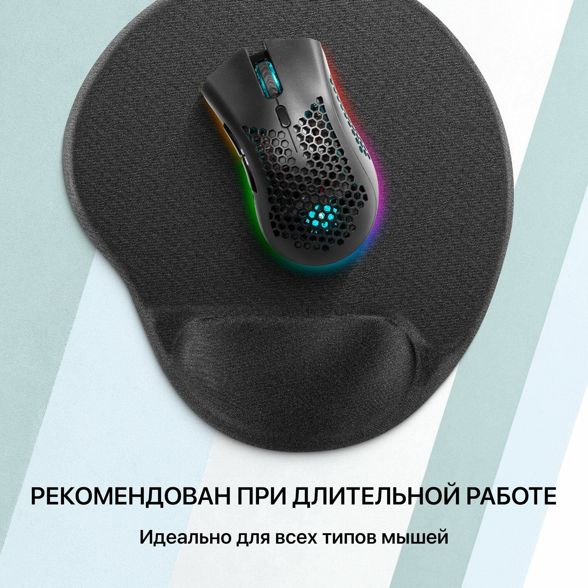 Коврик для мыши с эргономичной подушкой, предотвращающей возникновение туннельного синдрома запястья — заболевания, которое развивается при длительной работе с мышью. Забота о здоровье потребителей. Коврик для мыши имеет прочное лайкровое покрытие и подходит как для оптических, так и для лазерных мышей.
