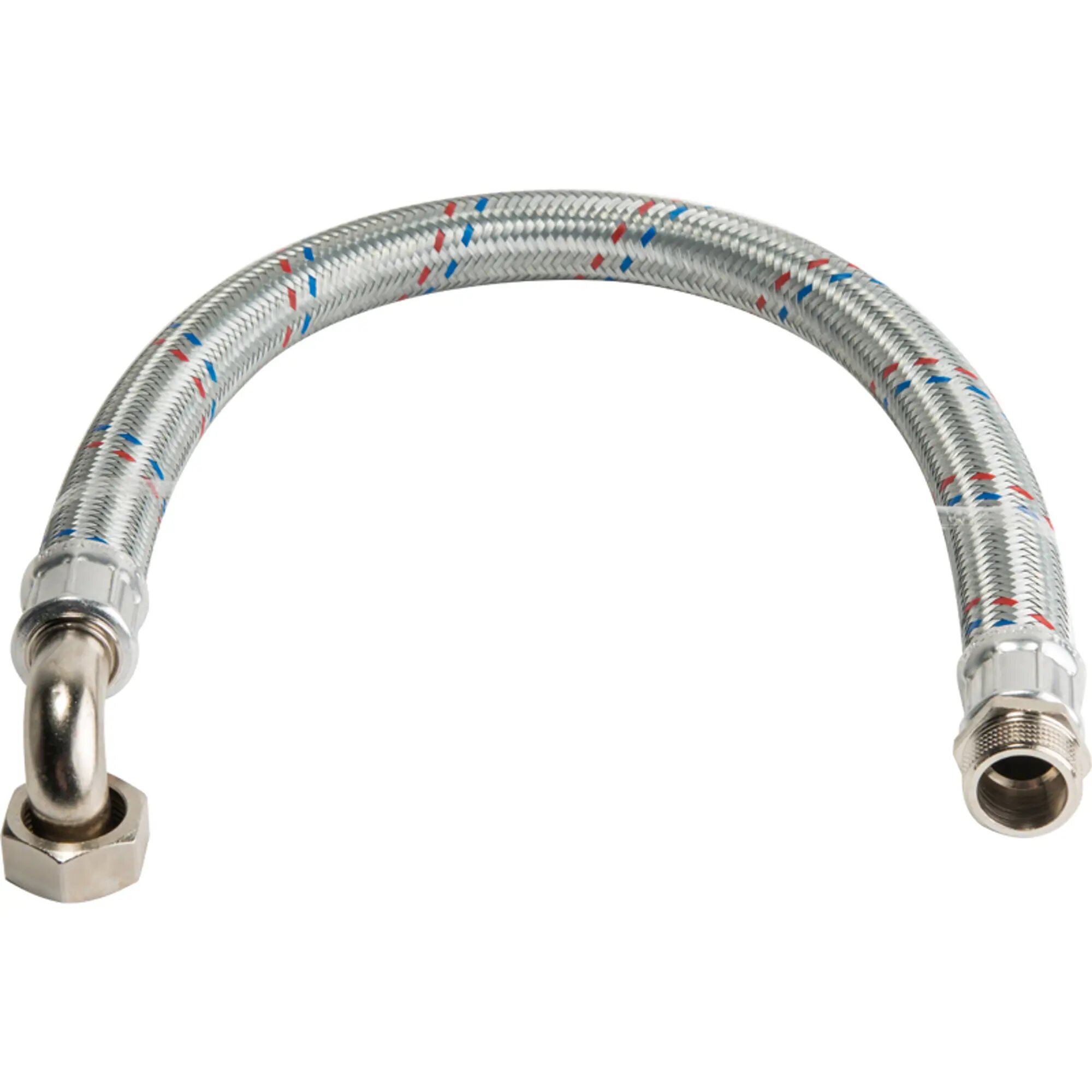 Гибкая подводка угловая— соединительный элемент между бытовыми приборами и трубопроводами с периодическим потоком воды. Представляет собой резиновую трубку в стальной нержавеющей оплетке. Применяется как альтернатива жестким трубам из ПНД и ПП там, где их установка затруднительна.