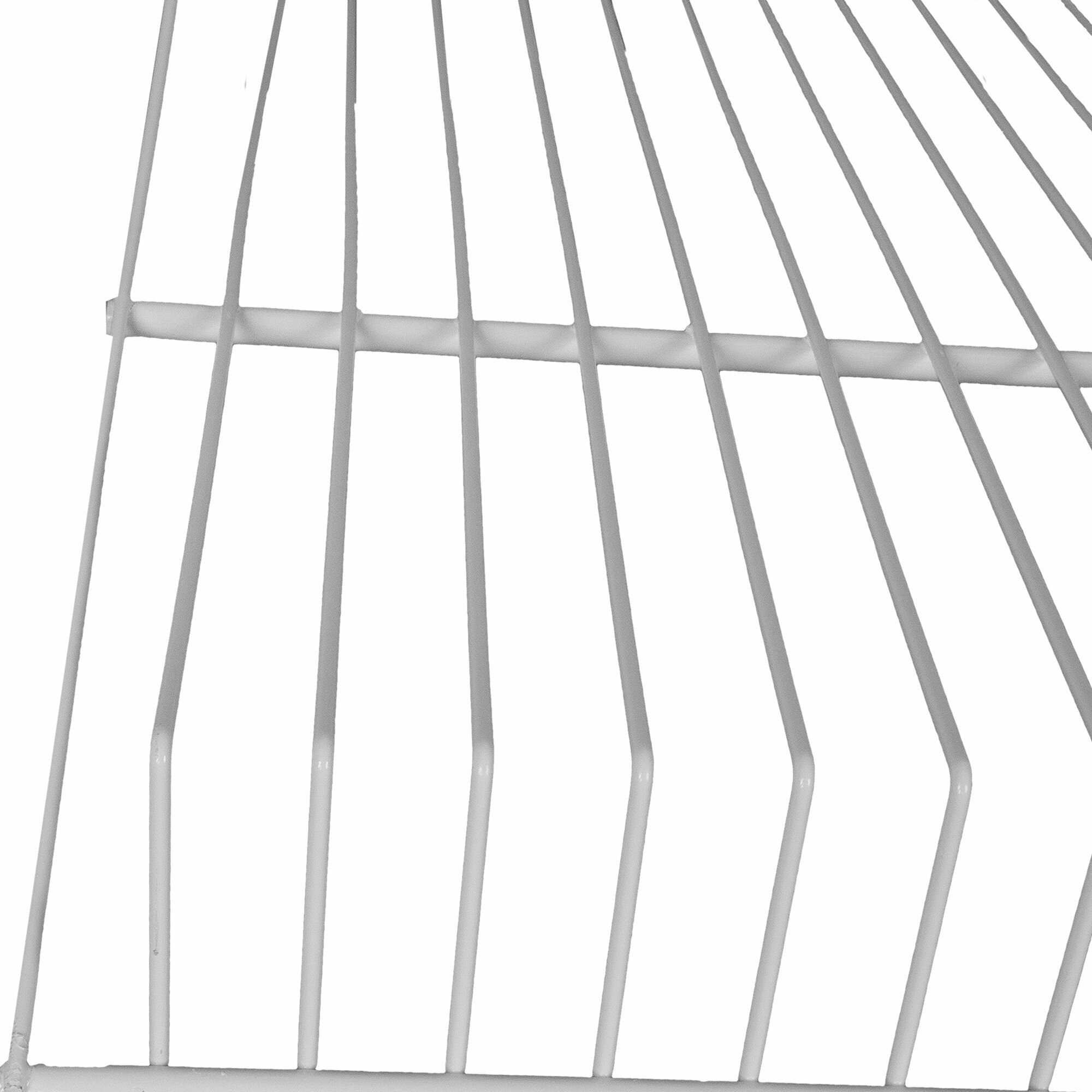 Полка для обуви предназначена для хранения туфель, босоножек, ботильонов. На полке длиной 60,4 см и шириной 40,6 см размещается до шести пар. Элемент изготовлен из окрашенной стали, устойчивой к появлению коррозии. Решетчатая конструкция не накапливает пыль и обеспечивает естественную вентиляцию обуви. Полка подвешивается на направляющих стойках или крепится к стене. При необходимости можно приобрести несколько элементов и скомпоновать систему хранения под свои потребности.