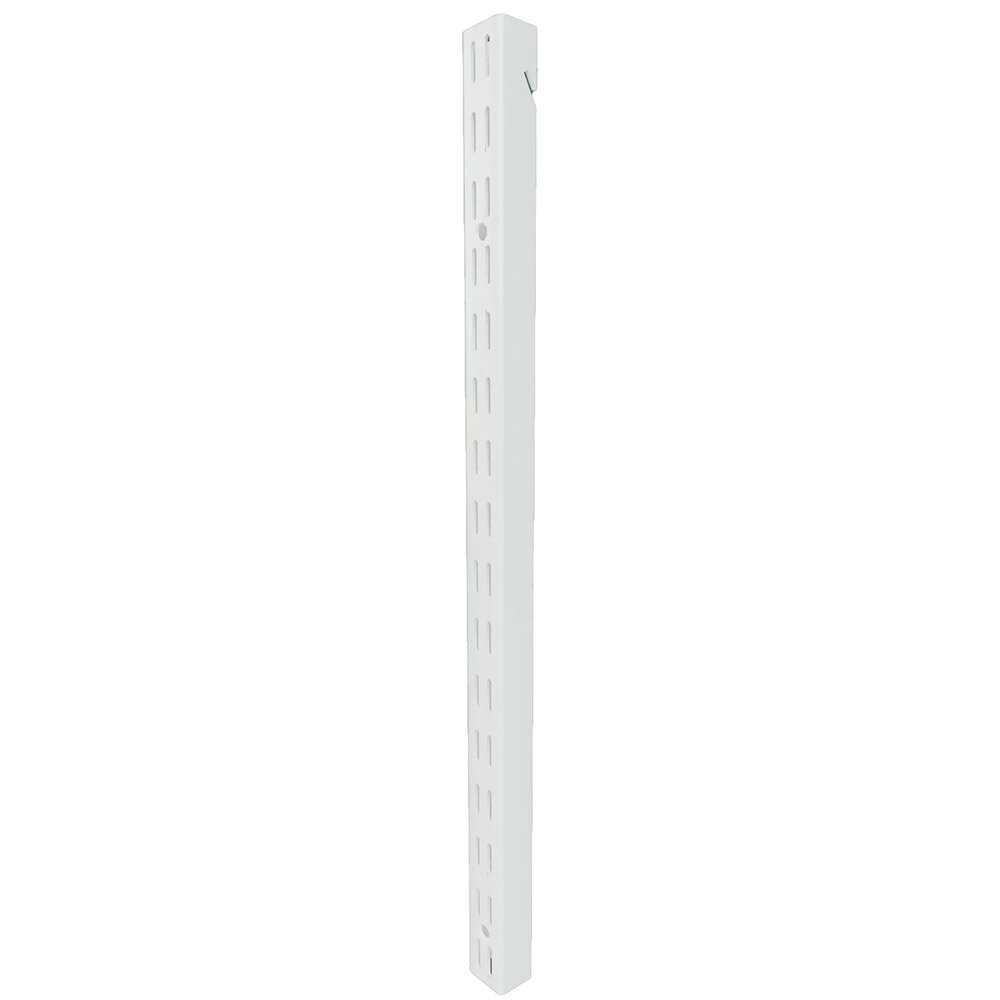 Для фиксации аксессуаров на нужной высоте стойка имеет пазы по всей длине. Элемент изготовлен из окрашенной стали и подходит для использования в навесных системах хранения в прихожих, кладовых, гардеробных, шкафах-купе.