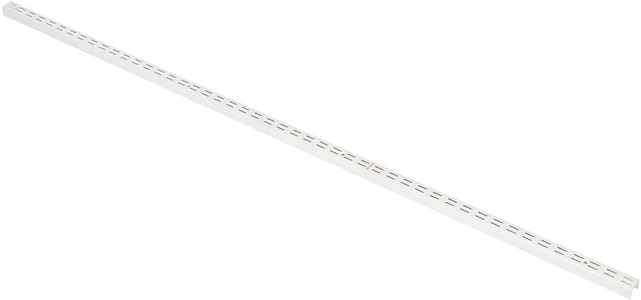 Для фиксации аксессуаров на нужной высоте стойка имеет пазы по всей длине. Элемент изготовлен из окрашенной стали и подходит для использования в навесных системах хранения в прихожих, кладовых, гардеробных, шкафах-купе.