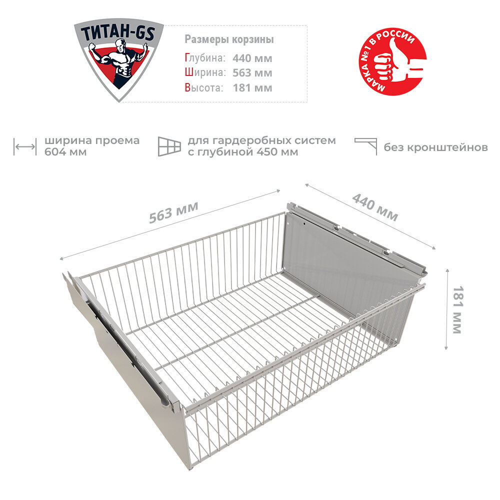 Корзина выдвижная Титан-GS 181х440х563 мм цвет белый
