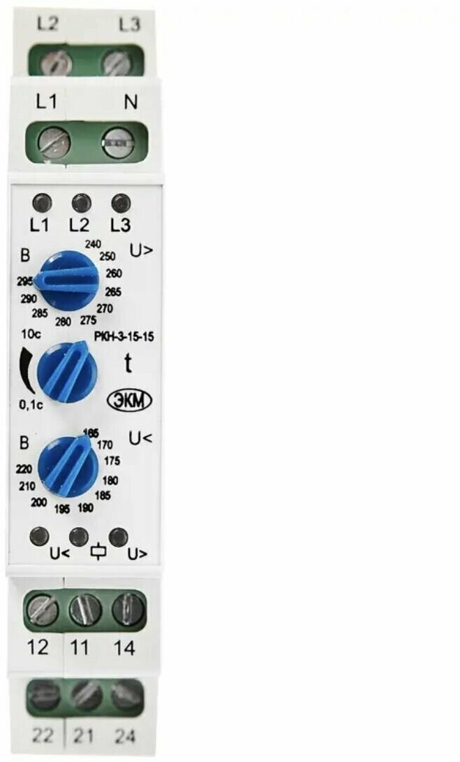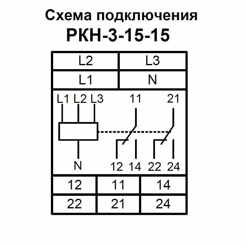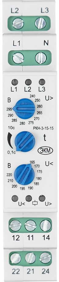 | Применение продукта | Реле контроля напряжения РКН-3-15-15 предназначено для контроля наличия, «слипания» и порядка чередования фаз в цепях трёхфазного напряжения в сетях с нейтралью, а также для контроля снижения и превышения напряжения ниже и выше установленного порога |