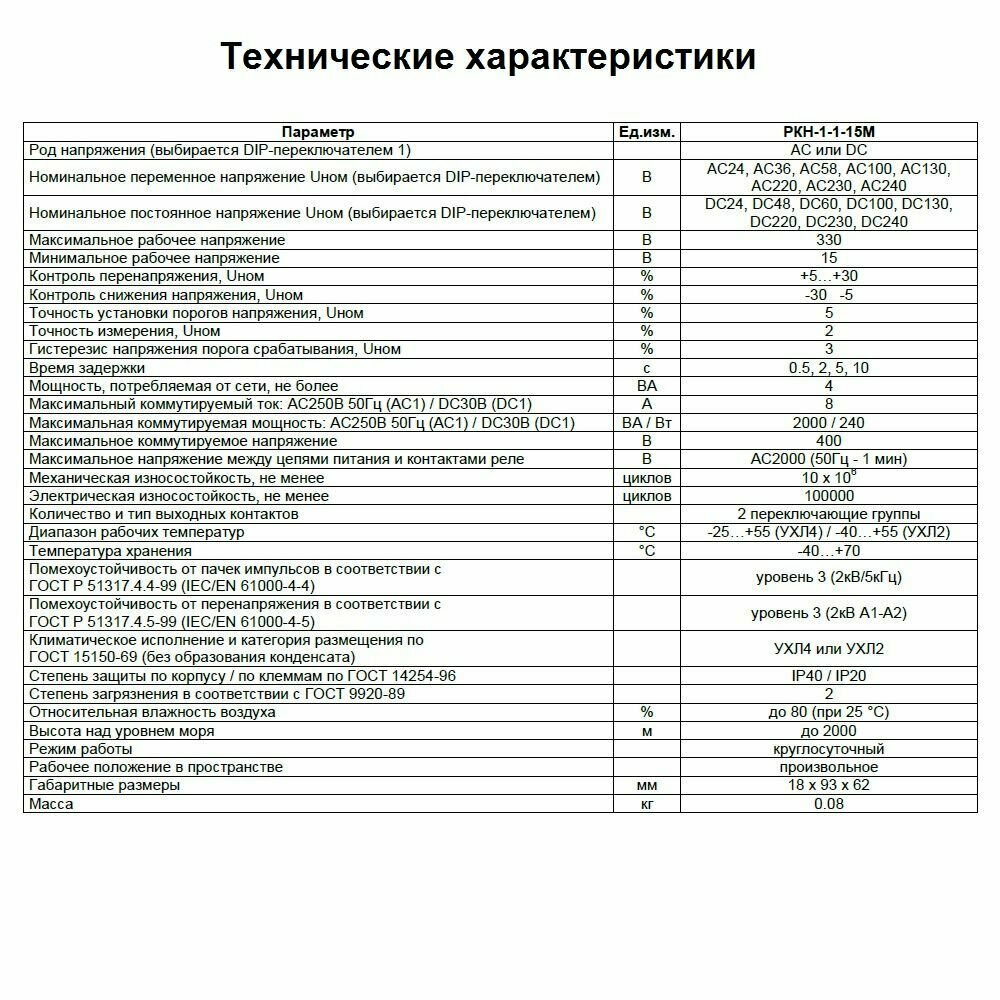 | Модель продукта | РКН-1-1-15 AC230В УХЛ4 |