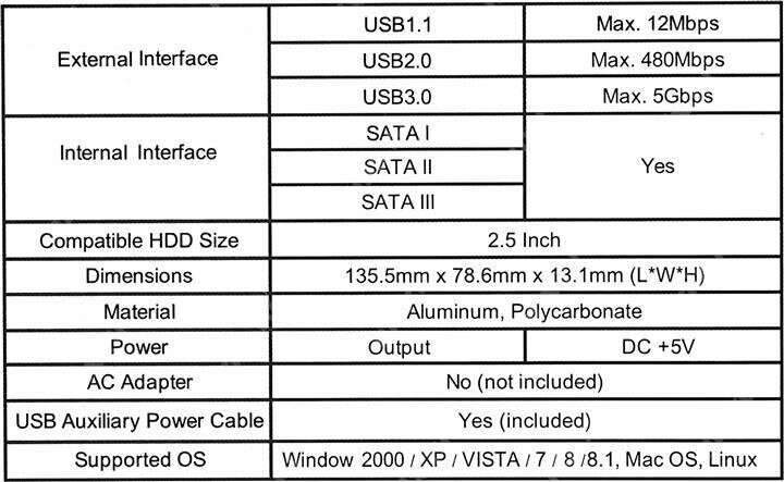| Тип корпуса | Внешний корпус для HDD |