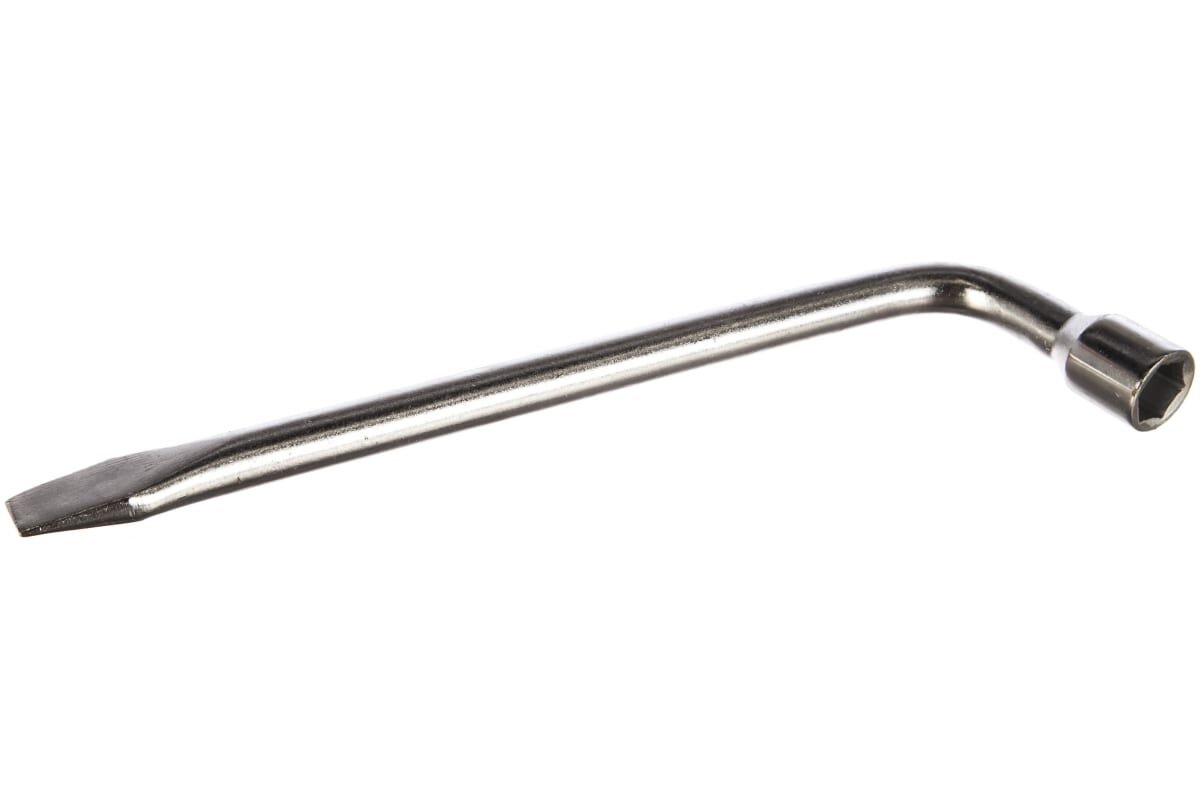 **Ключ баллонный** применяется для монтажа и демонтажа автомобильных колес. Благодаря Г-образной форме значительно увеличивает крутящий момент, снижая нагрузку на руки пользователя. Изготовлен из прочной стали, отличающейся долгим сроком службы.
