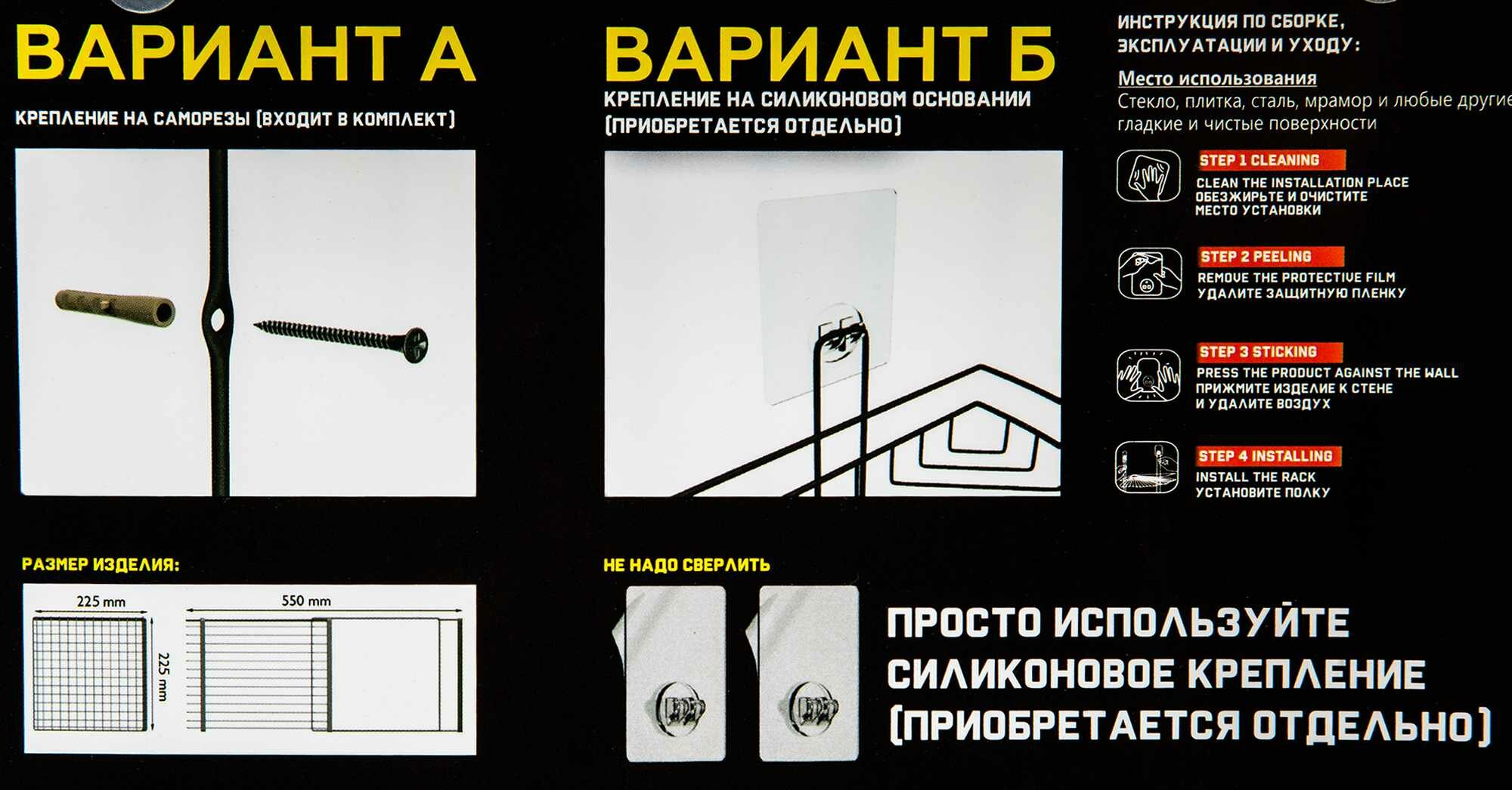 - для подвешивания можно использовать саморезы (идут в комплекте) или силиконовое основание (приобретается отдельно).