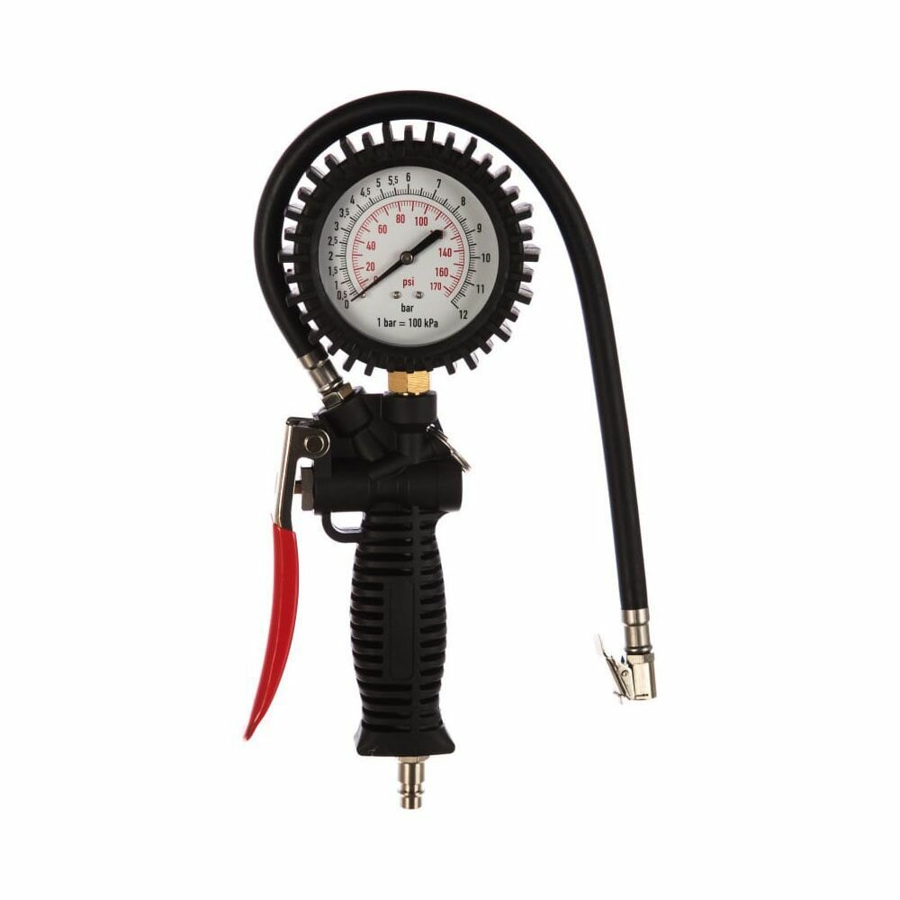 **Манометр для шин Thorvik** предназначен для измерения давления в шинах автомобиля. Может использоваться без необходимости предварительного снятия декоративных колпаков. Модель трехфункциональная, имеет стрелочный индикатор, показывающий текущее давление в системе.