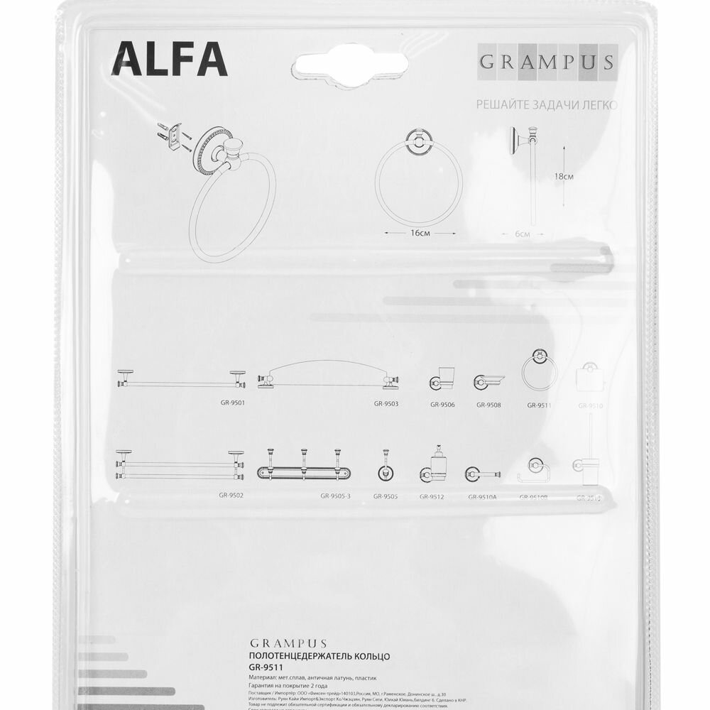 На сегодняшний день товар «Держатель для полотенца кольцо Alfa цвет античная латунь Grampus (GR-9511)» можно купить с кешбеком в 2 магазинах: Santehnika-room, Яндекс.Маркет