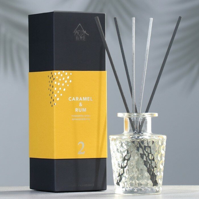 Аромат для дома «Карамель и ром» используют для создания нужной ауры в закрытом помещении. Дизайнерский сосуд, рассчитанный на 100 мл, выступает не только как функциональный аксессуар, но и как декоративный элемент интерьера. Через поры ароматических палочек воздух наполняет сладковатый аромат карамели и рома.