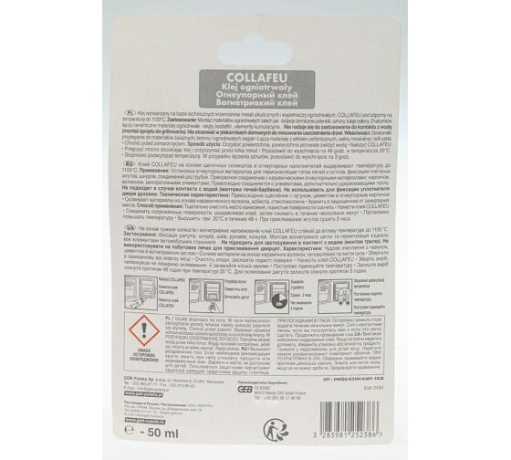 Клей огнеупорный для фиксации волокнистого материала 50 мл GEB COLLAFEU