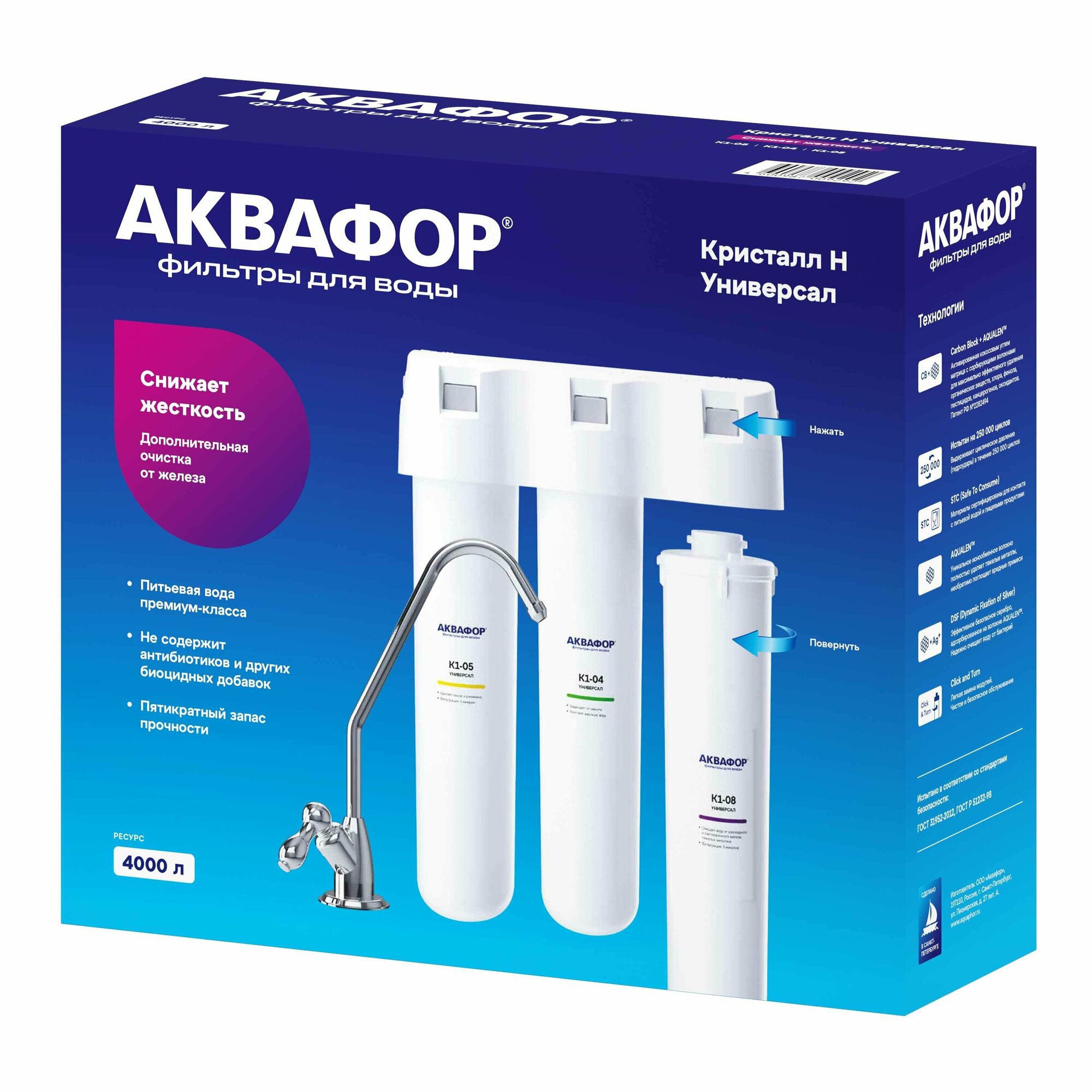 Система трёхступенчатая Аквафор Кристалл Универсал для жёсткой воды