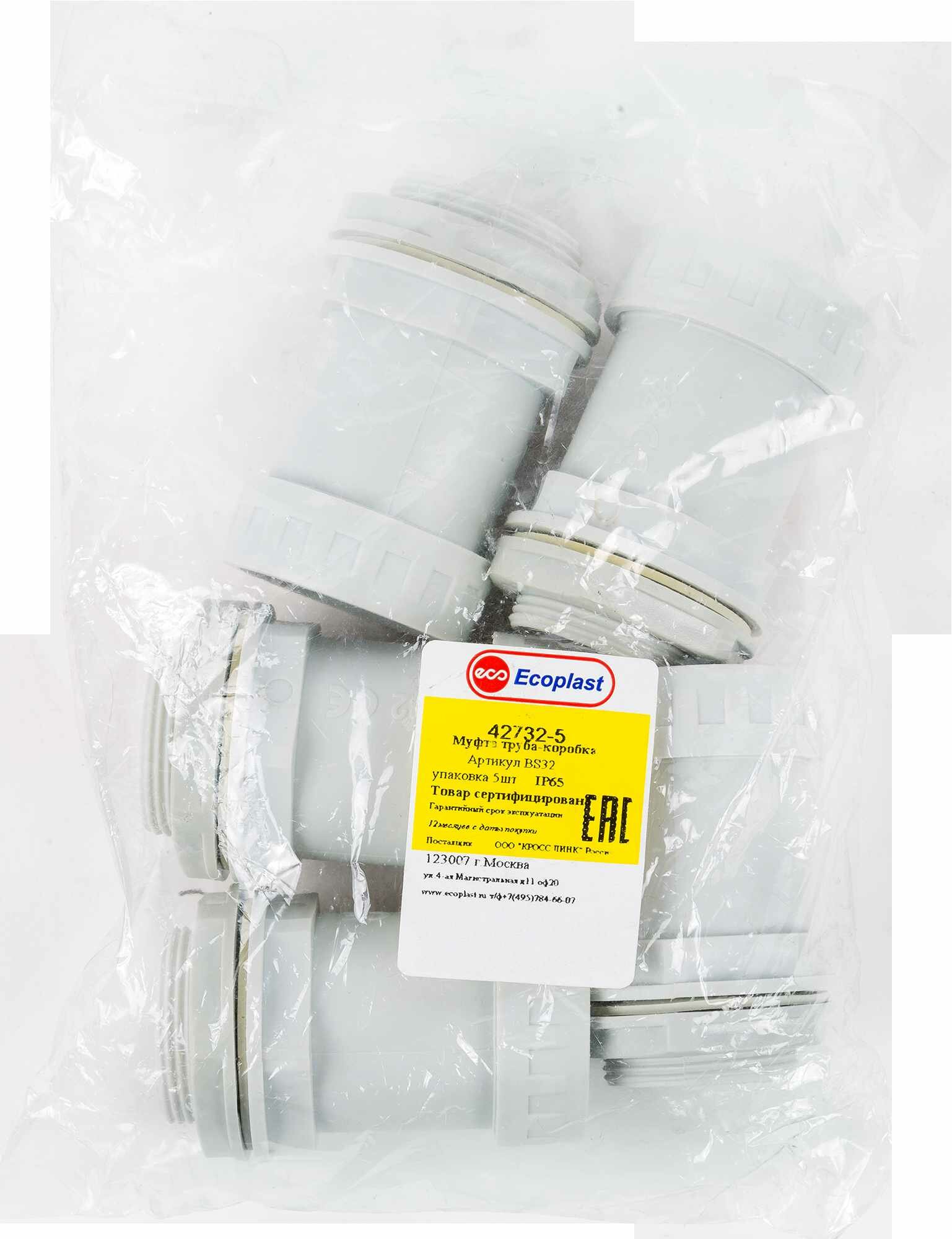 Муфта труба-коробка Экопласт BS32 D32 мм 5 шт.