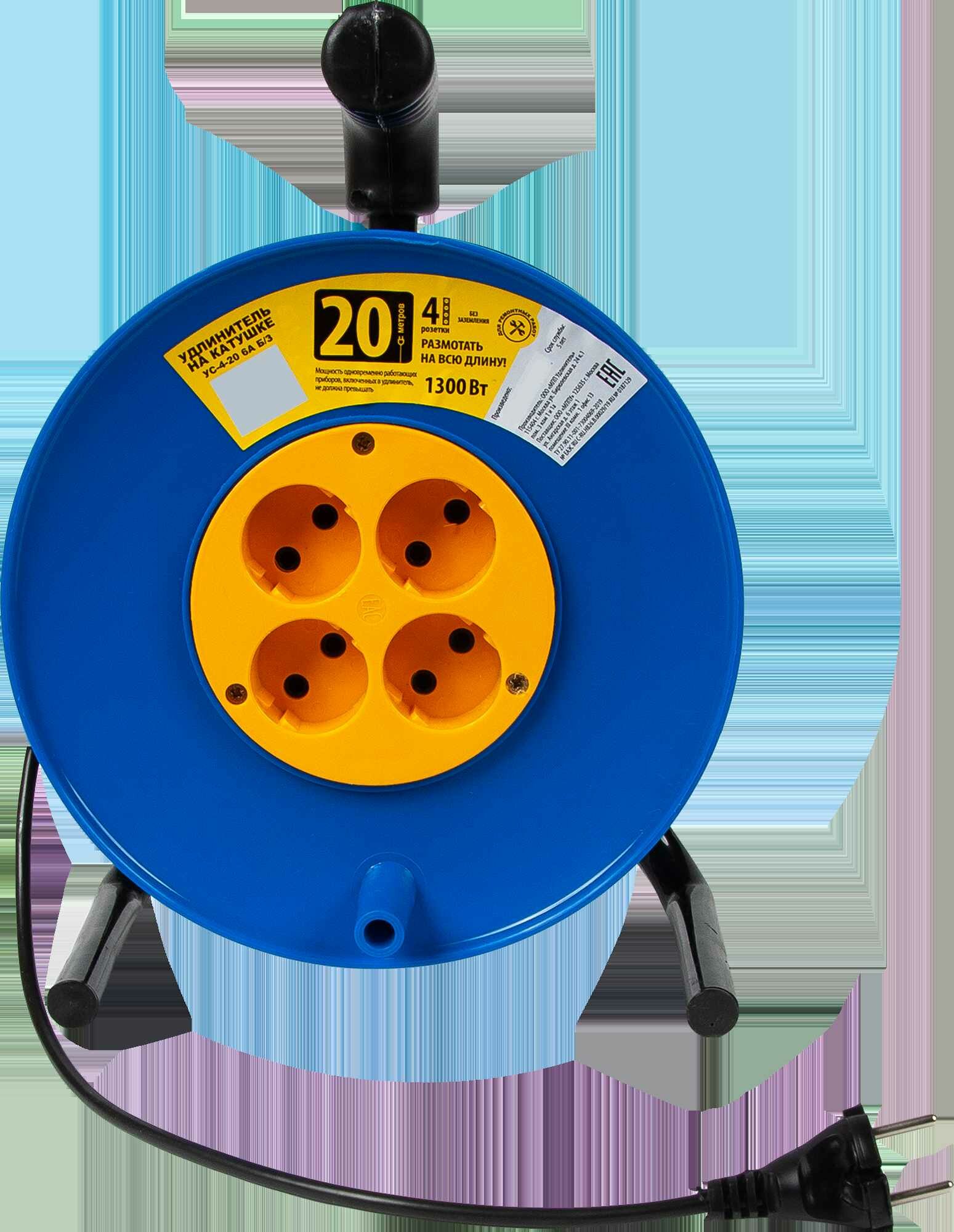 Удлинитель без заземления на катушке 4 розетки 2х0.75 мм2 20 м Леруа Мерлен