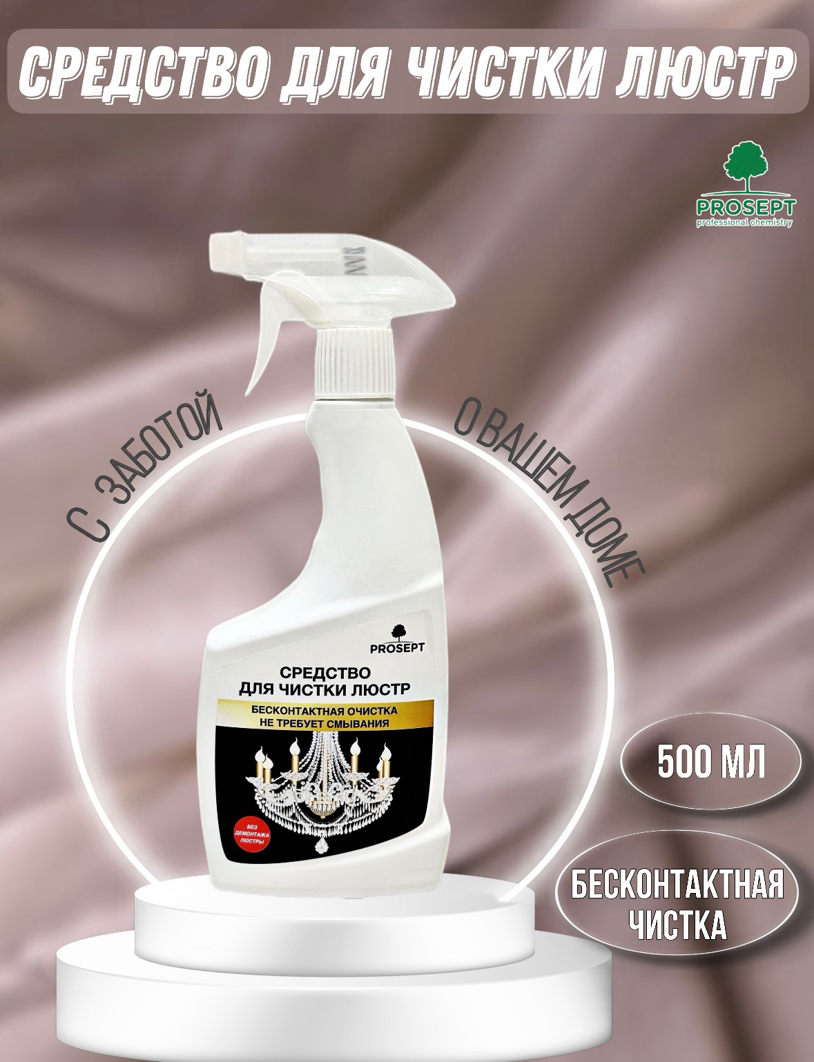 Средство для мытья люстр Prosept – готовый состав для быстрой бесконтактной чистки люстр из стекла и хрусталя. Средство удаляет налет, разводы, пыль, грязь, следы от пальцев и другие пятна на поверхностях элементов люстры любой сложности.