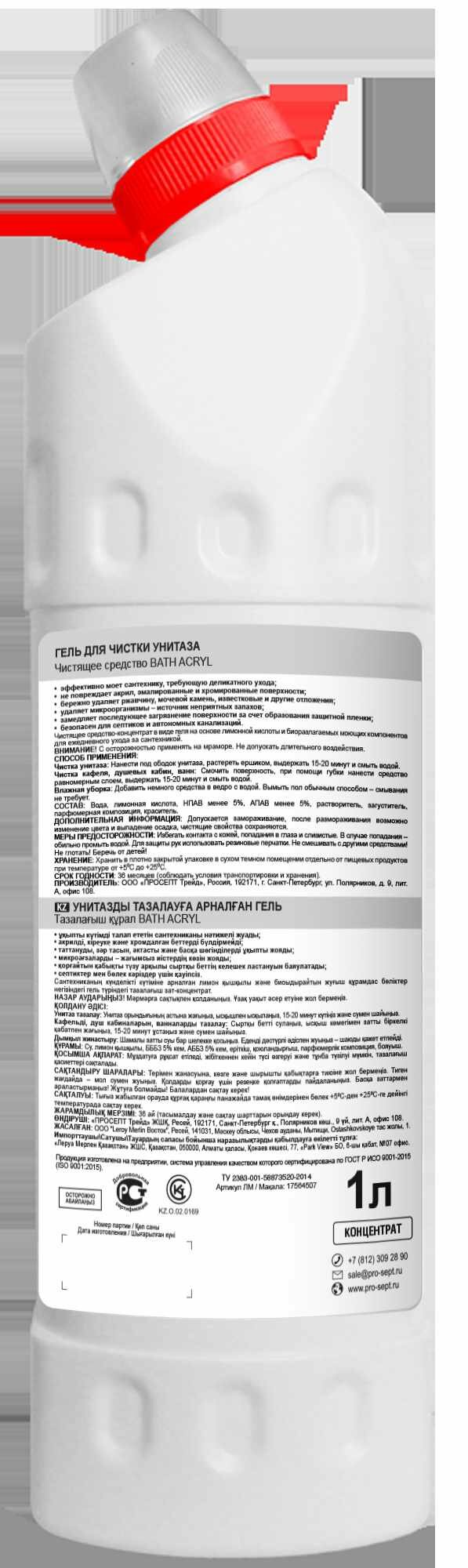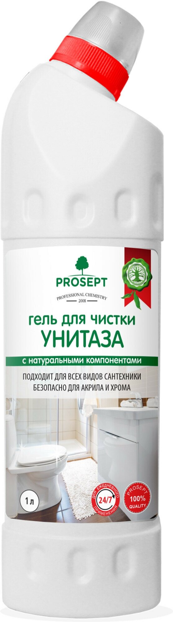 Гель для чистки унитаза экологический Prosept – чистящее средство-концентрат для ухода за сантехникой. Средство бережно удаляет ржавчину, мочевой камень, известковые и другие отложения с поверхностей, требующих деликатного ухода (акрил, эмаль, хром).