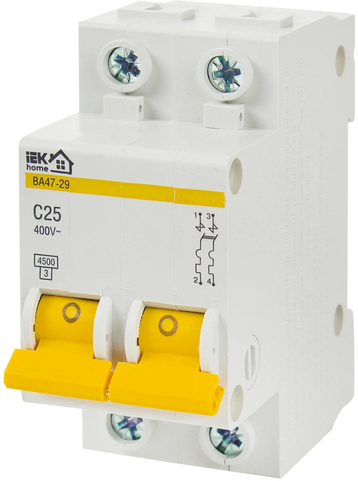 Выключатель автоматический IEK Home В А47-29 2 полюса 25 А (ВА47-29)