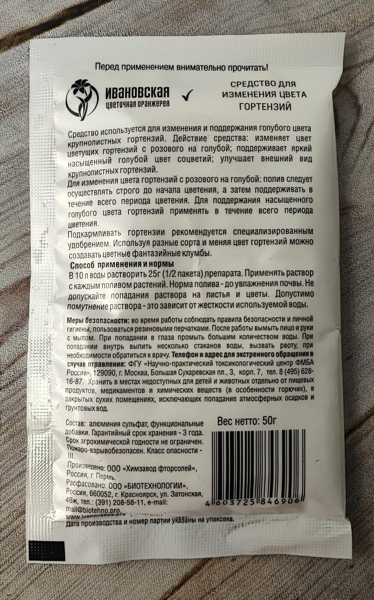 Представляет собой сухой субстрат весом 50 г в пакете-саше.