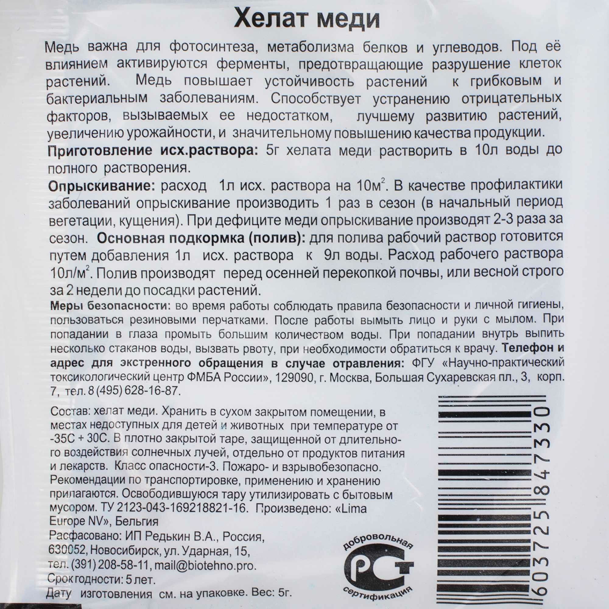 Удобрение Хелат меди 0.005 кг Леруа Мерлен