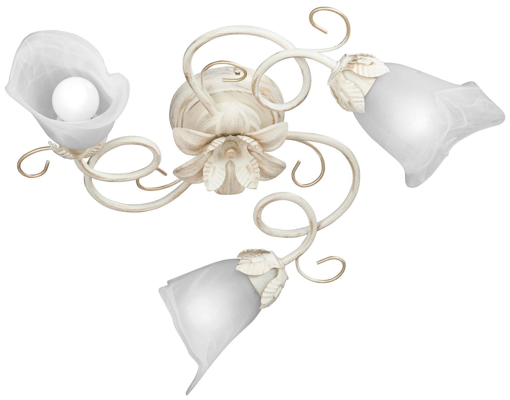 Люстра крепится к потолку с помощью планки. Материалом основания является металл. Плафоны изготовлены из стекла. Внимание: лампочки не входят в комплект, их необходимо приобретать отдельно. Это можно сделать в нашем интернет-магазине. Бра в этой серии нет — поэтому, если возникнет необходимость дополнить светильник, его придется подбирать из другой коллекции. Тип цоколя лампы: E14.