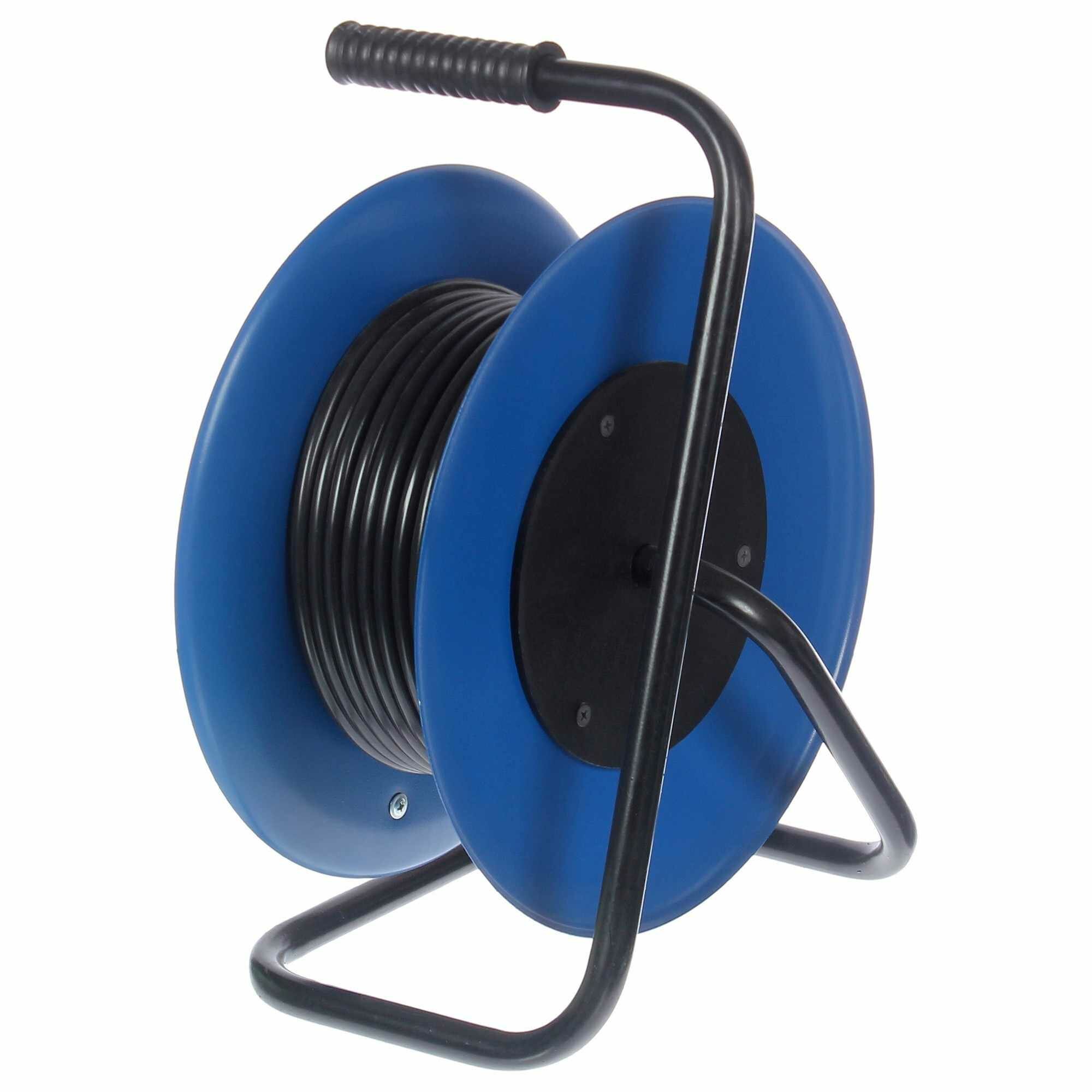 Удлинитель на катушке имеет длину провода 20 м. Служит для временного подключения бытовых приборов и техники, одновременно может применяться в качестве тройника. Предназначен для внешнего использования. Кабель с заземлением подключается к бытовой электрической сети напряжением 230 В. Удлинитель имеет 4 стандартных розетки с номинальной силой тока 16 А.