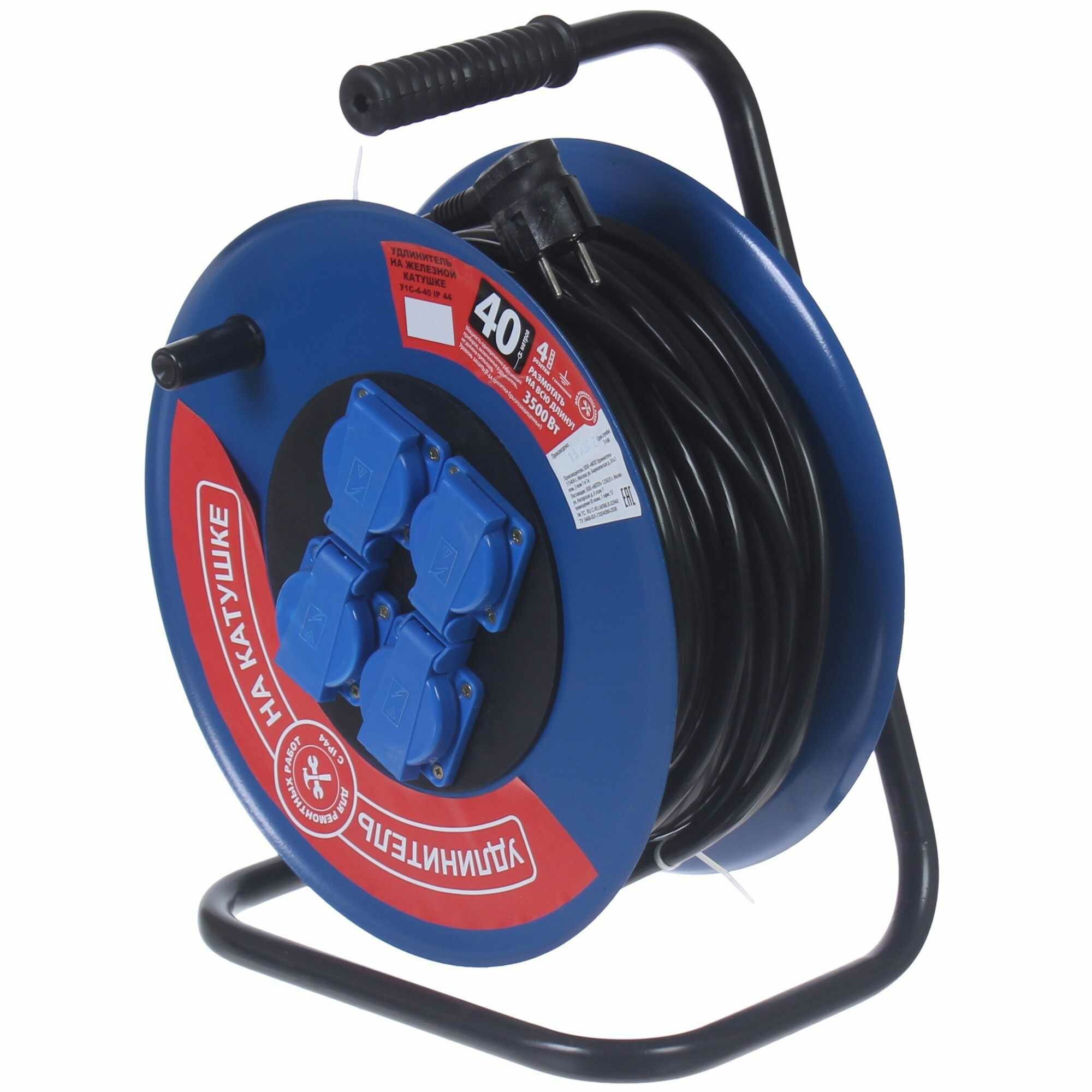 Удлинитель с заземлением на катушке 4 розетки 40 м 16А IP44 Леруа Мерлен