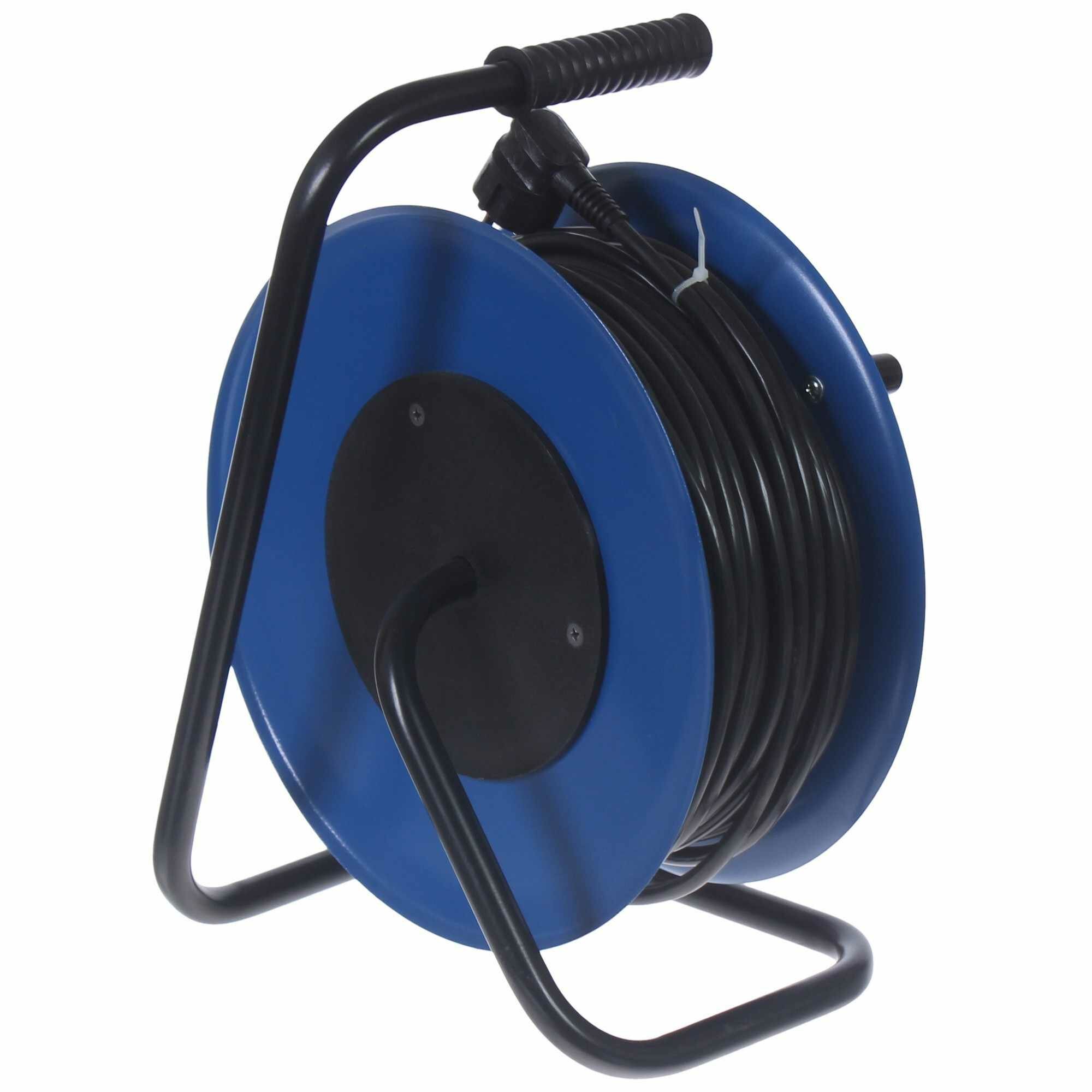 Удлинитель на катушке имеет длину провода 40 м. Служит для временного подключения бытовых приборов и техники, одновременно может применяться в качестве тройника. Предназначен для внешнего использования. Кабель с заземлением подключается к бытовой электрической сети напряжением 230 В. Удлинитель имеет 4 стандартных розетки с номинальной силой тока 16 А.