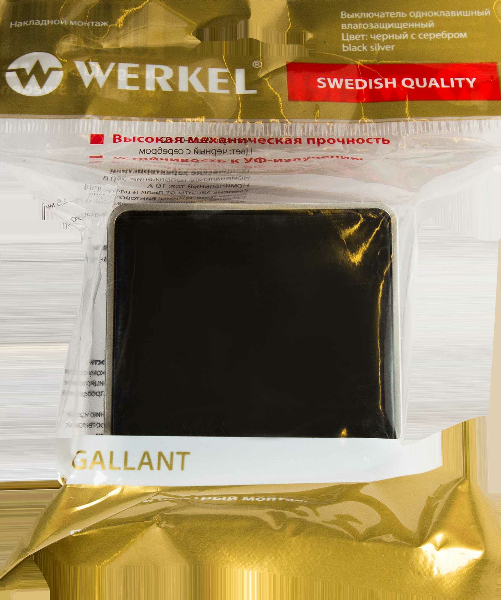 Выключатель накладной влагозащищённый Werkel Gallant 1 клавиша IP44 цвет чёрный с серебром