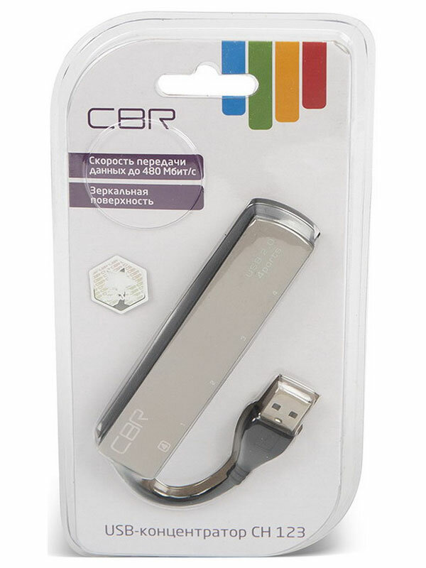 CBR CH 123 - 4-х портовых высокоскоростной USB-концентратор, который позволяет быстро и удобно подключать к компьютеру или ноутбуку внешнее оборудование. Размер этой малютки настолько крохотный, что он легко поместиться в карман брюк или во внутреннее отделение женской сумочки. Гибкий кабель позволит расположить хаб в любом удобном для Вас месте.