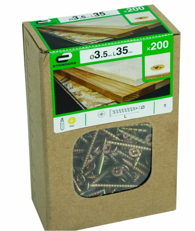 Саморезы для дерева STANDERS оцинкованные 3.5x35 200 шт.