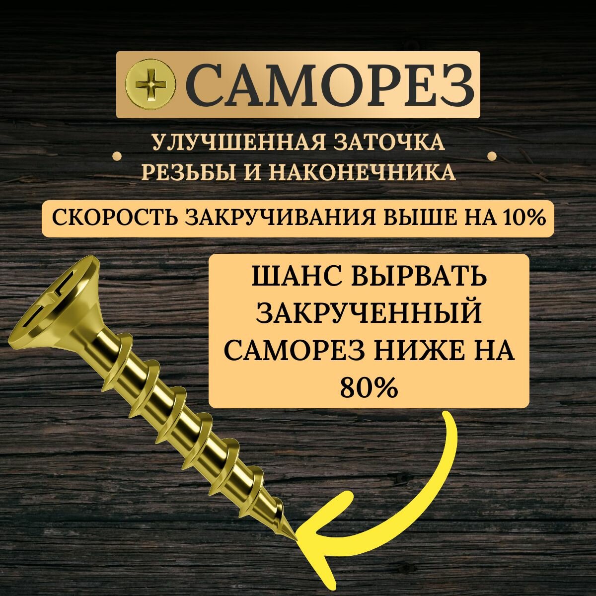 Благодаря уникальной технологии заточки резьбы и наконечника скорость закручивания самореза в дерево выше в среднем на 10%. Также это позитивно влияет на увеличение момента вырывания: средний показатель по результатам тестирования – 11400 Н.м., что выше показателей обычных саморезов в среднем на 80%.