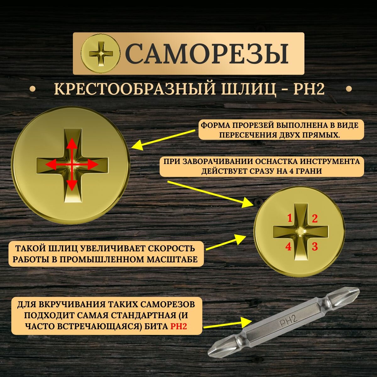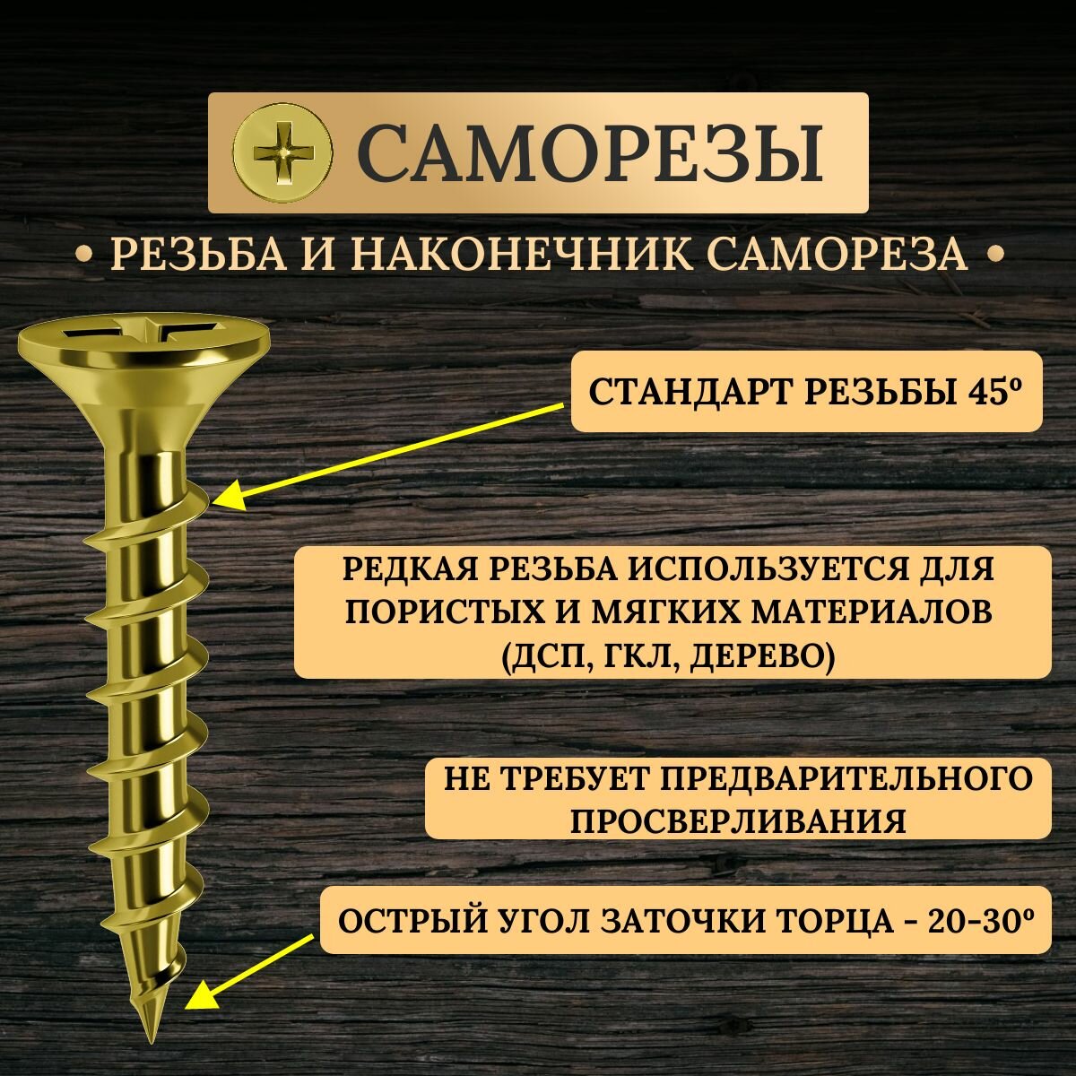 Саморез по дереву Standers используется при внутренних работах для фиксации изделий из древесины и материалов на её основе. Имеет потайную головку, которая утапливается в поверхность. Закручивается крестообразной отверткой или шуруповертом с битой Phillips (размер PH2) без предварительного сверления.