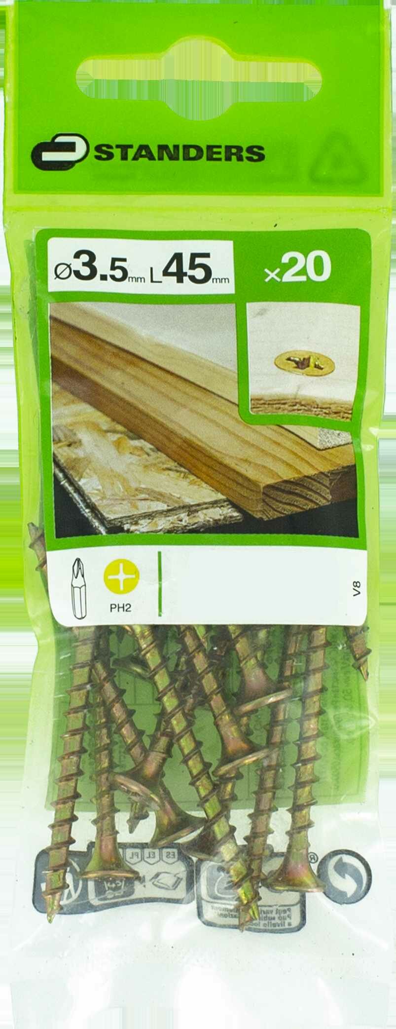 Саморезы для дерева STANDERS оцинкованные 3.5x45 20 шт.