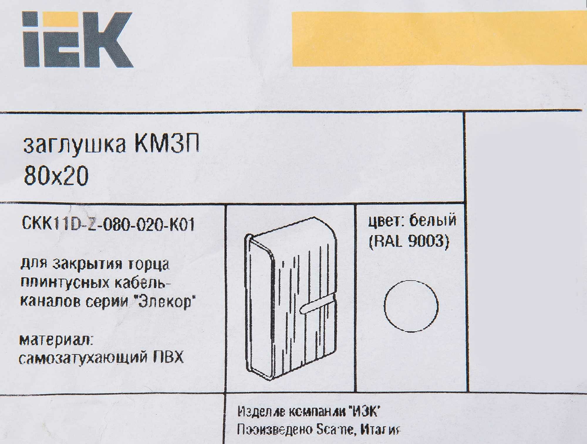 Заглушка для кабель-канала IEK 80x20 мм цвет белый