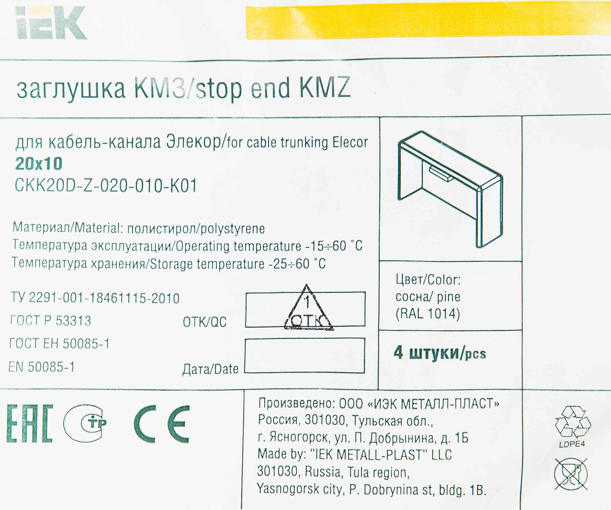 | Применение продукта | Служит для закрытия торца кабель-канала. |