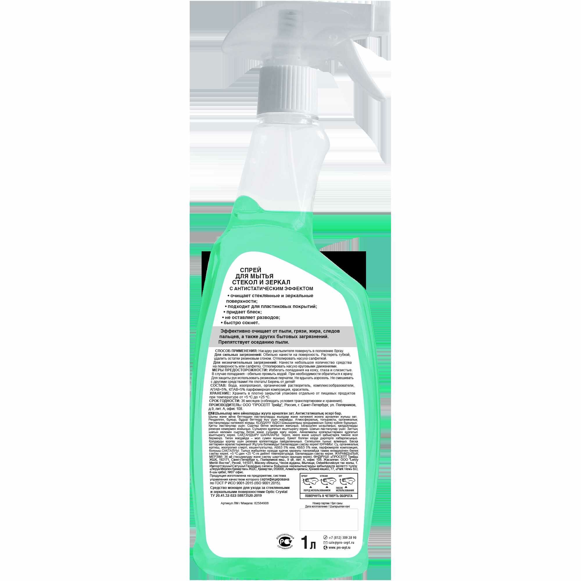 Средство для мытья стекол Prosept – удобный и эффективный спрей для очистки стекол и зеркал с антистатическим эффектом. Эффективно удаляет грязь, пыль, следы пальцев и другие бытовые загрязнения.