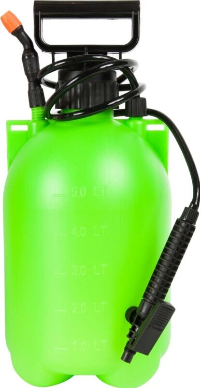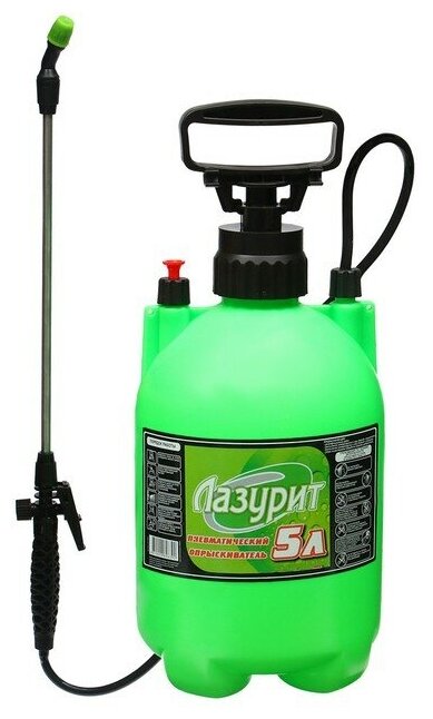 Опрыскиватель «Лазурит» пневматический предназначен для распыления жидких растворов удобрений, растворов химикатов для борьбы с вредителями и болезнями растений, а также для дезинфекционных работ. Распыление жидкости происходит под давлением 0,1–5 бар. Полипропиленовый корпус диаметром 180 мм имеет объем 5 л, устойчив к воздействию ультрафиолета. Шланг длиной 1,13 м изготовлен из ПВХ.
