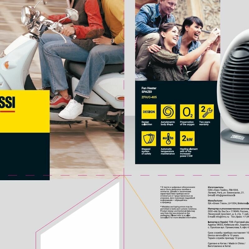 Тепловентилятор Zanussi ZFH/C-405 pink относится к дизайнерской коллекции SPAZIO, отличительной чертой которых является инновационный дизайн, предельно тихая работа и многоступенчатая система безопасности. Корпус тепловентилятора выполнен в специальной аэродинамической форме, что увеличивает скорость распространения тёплого воздуха по всей площади помещения.