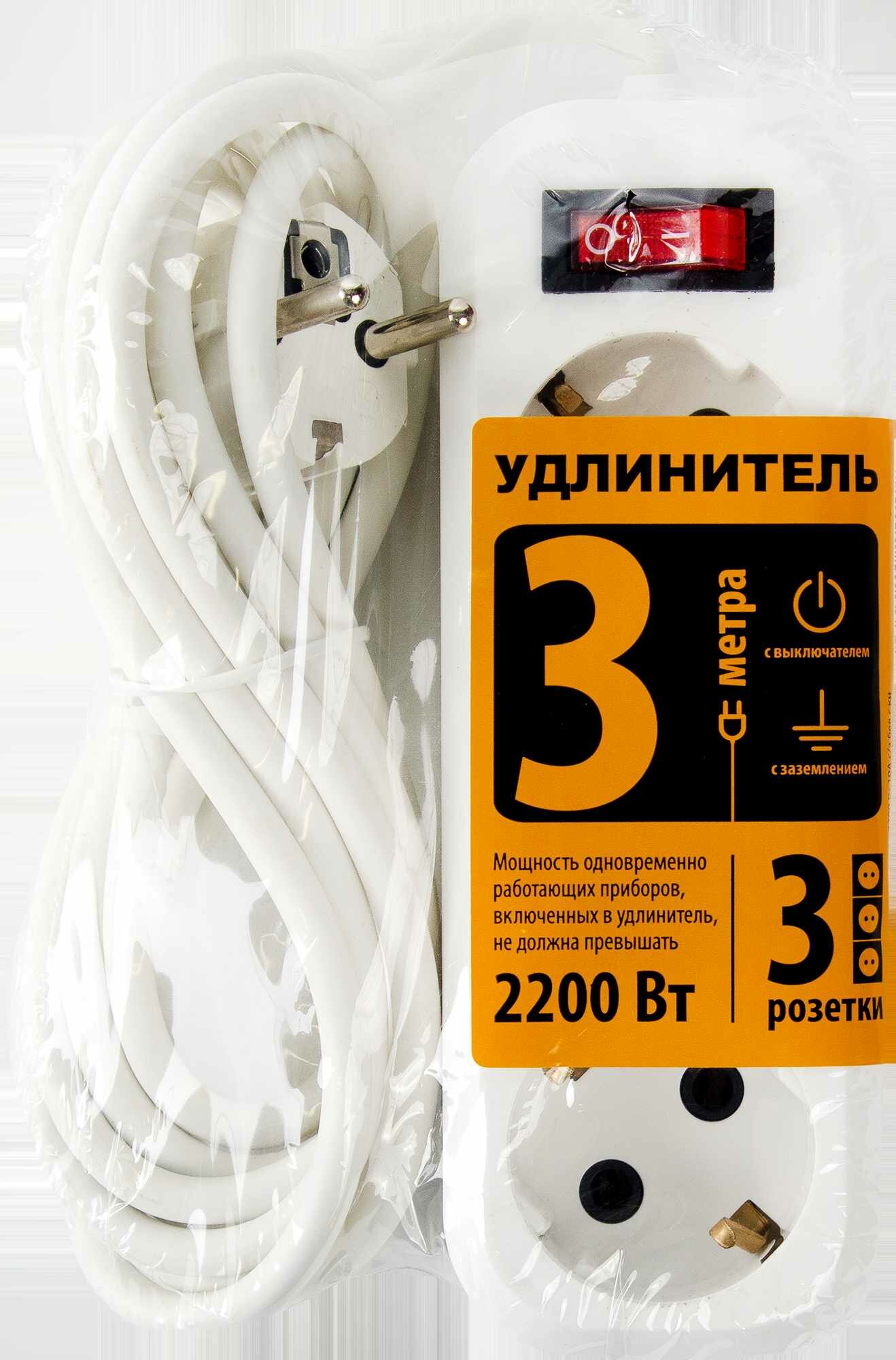 Удлинитель бытовой с заземлением предназначен для подключения к электрической сети с напряжением 230 В бытовых электроприборов, электроинструментов, аудио- и видеотехники. Модель с выключателем применяется в местах, удаленных от стационарных розеток, когда длины шнура подключаемого устройства оказывается недостаточно. Количество розеток для подключения — 3 шт. Цвет — белый. Страна производства — Россия.