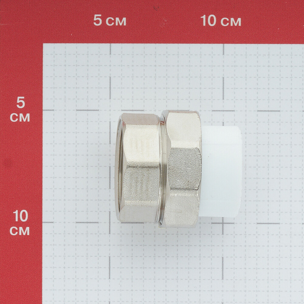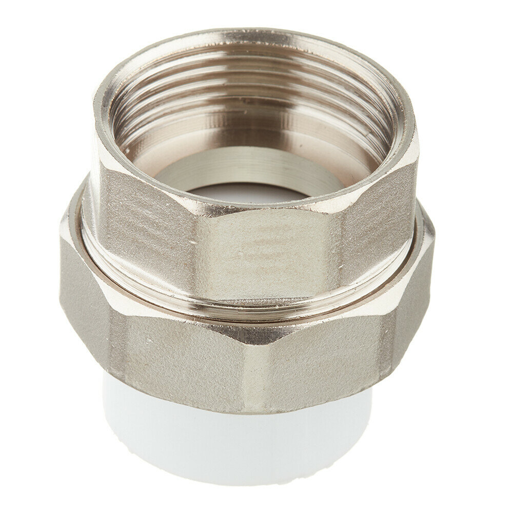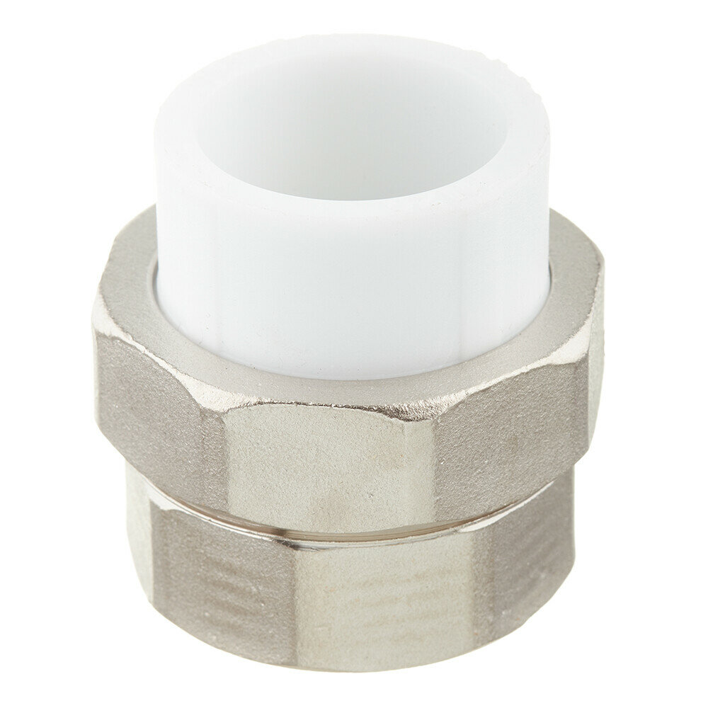 Муфта комбинированная разъёмная раструбная — фитинг для соединения труб: полипропиленовой через раструб (входной диаметр 32 мм) и металлической через резьбу (размер 1,1/4"). Комбинация соединений — внутреннее/под пайку.