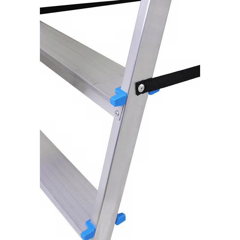 - Высота до верхней ступени достигает 1,05 м. Прорезиненные наконечники предотвращают скольжение во время эксплуатации.