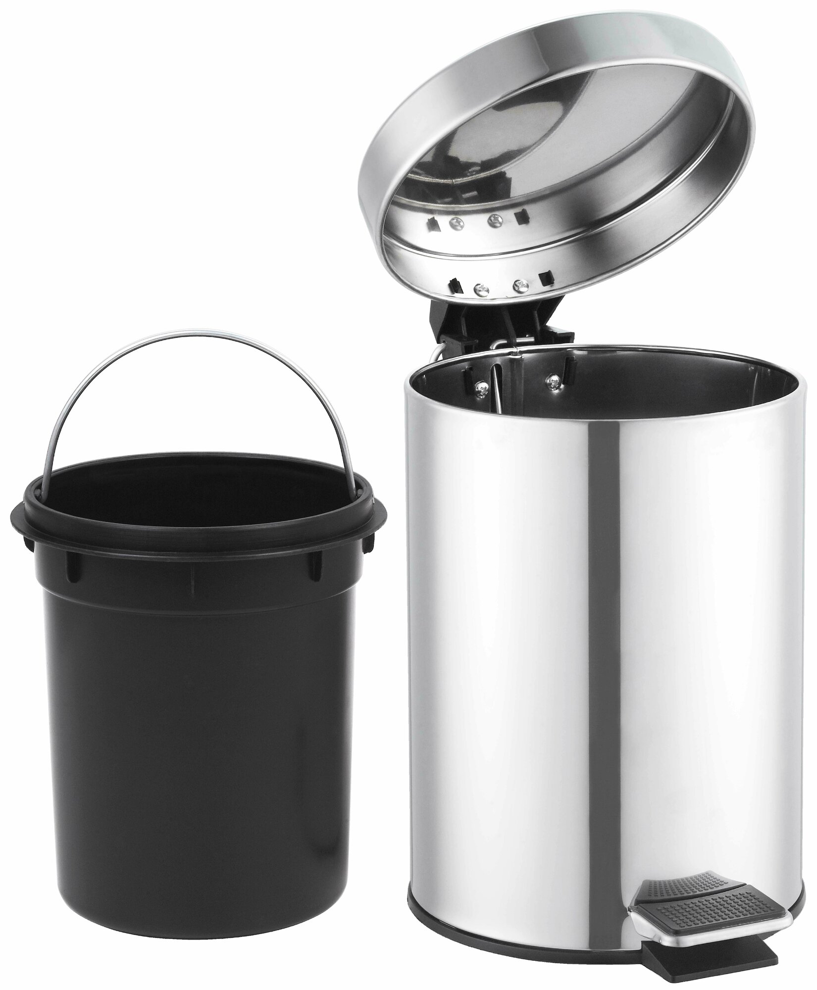 Хромированный бак объемом 3 л предназначен для сбора и временного хранения бытового мусора. Модель оснащена удобной ножной педалью, соединенной с откидной крышкой, которая защищает содержимое от взглядов и исключает распространение посторонних запахов. Практичный и эстетичный бак отлично дополнит интерьер комнаты, будет гармонично сочетаться с другими хромированными аксессуарами, поможет поддерживать порядок в ванной.