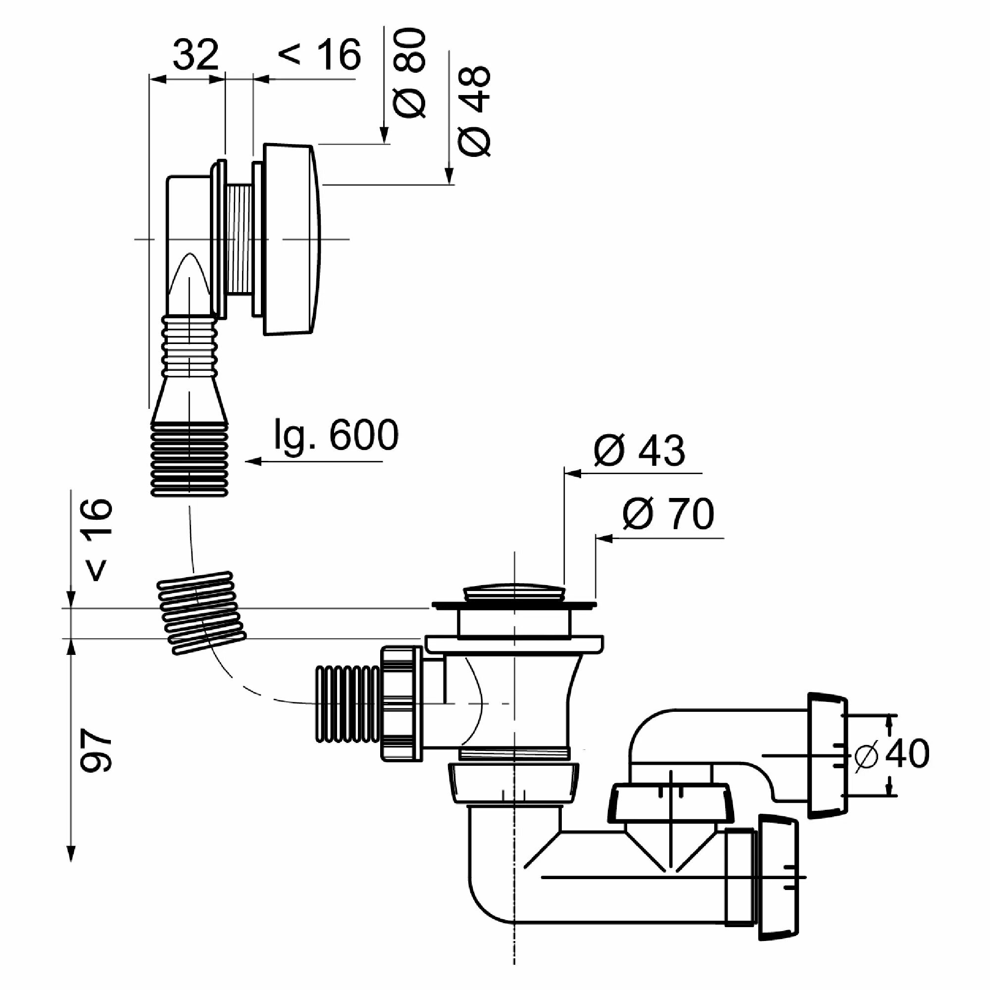 Сифон для ванны Equation с выпуском полуавтомат с ревизией