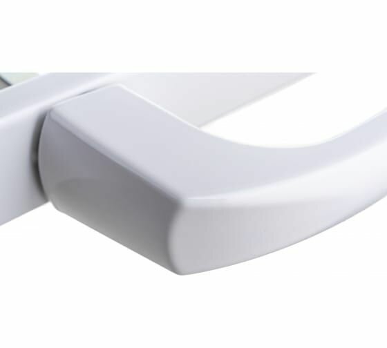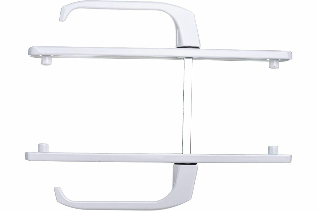 Рекомендуемая толщина двери: 55 - 70 мм. Изготовлена из алюминия с полимерным покрытием. Лаконичный дизайн делает фурнитуру универсальной. Цвет — белый. Конструкция имеет длительный срок службы, устойчива к механическим повреждениям. Простой монтаж позволяет быстро установить ручку на дверное полотно.