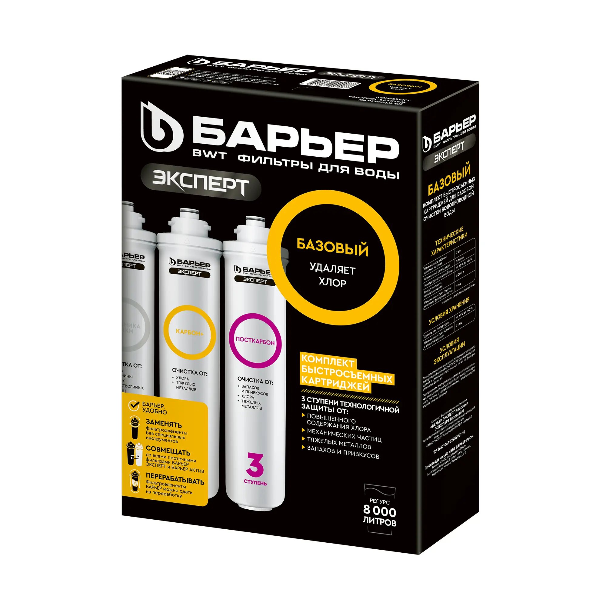 Сервис сравнения цен СкидкаГИД предлагает сравнить цены на товар «Набор картриджей Барьер Эксперт Базовый для воды нормальной жесткости 3 ступени»