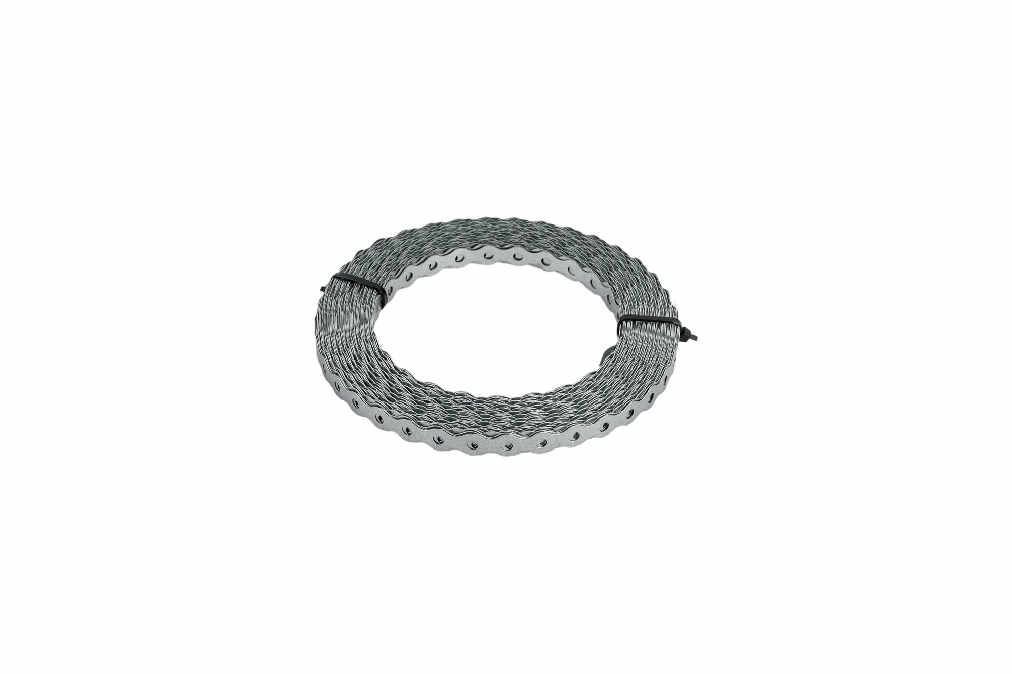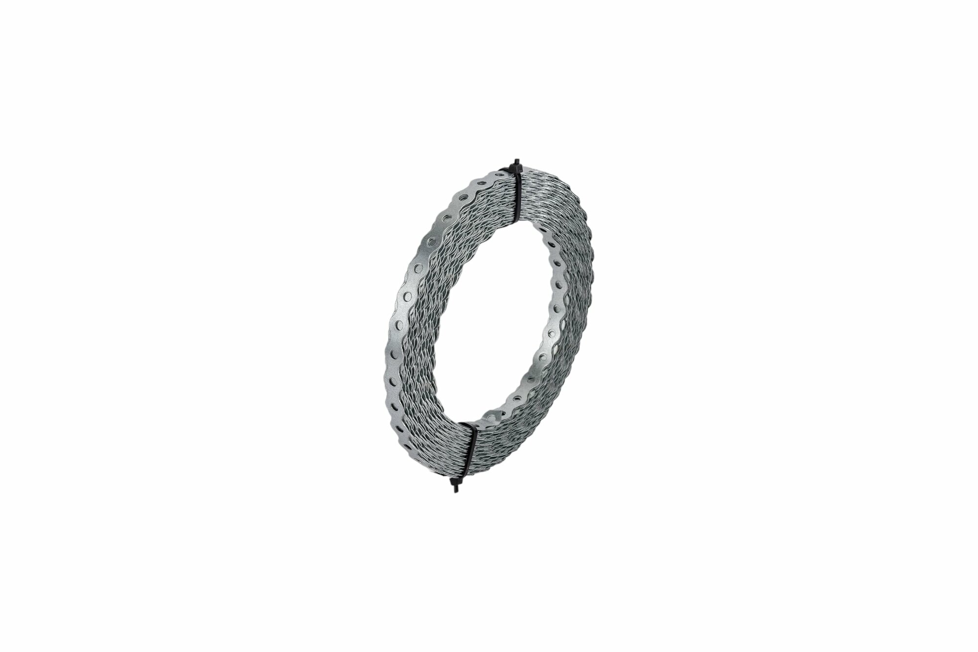 Лента перфорированная «Волна» с волнообразной кромкой и отверстиями одинакового диаметра по всей длине изготовлена из стали с оцинкованным покрытием. Применяется при монтаже легких вентиляционных систем, воздуховодов, инженерных коммуникаций, трубопроводов различного назначения. Служит для повышения жесткости отдельных узлов при сборке деревянных и усиления несущих конструкций — площадь крепежа получается достаточной, чтобы распределить нагрузку по всей поверхности.