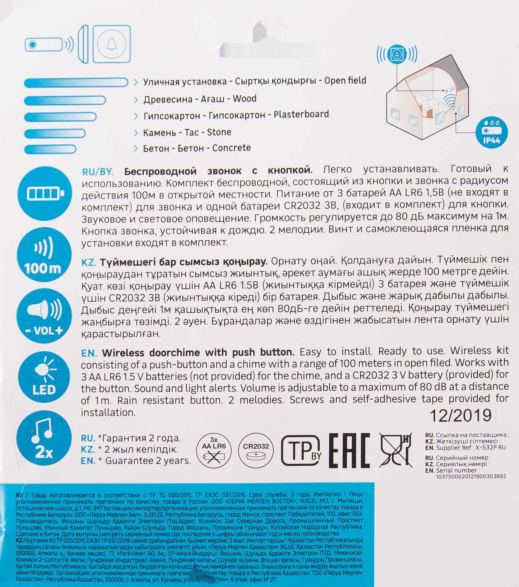 | Наименование товара | Беспроводной звонок |