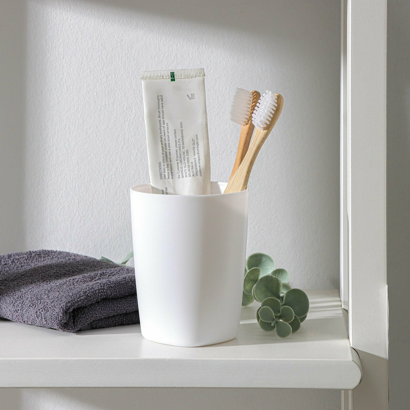 Компактные размеры изделия не помешают размещению других аксессуаров. Стакан для щеток легко мыть и чистить от мыльного налета и следов зубной пасты — достаточно протереть его мягкой тряпкой с использованием деликатных чистящих средств.