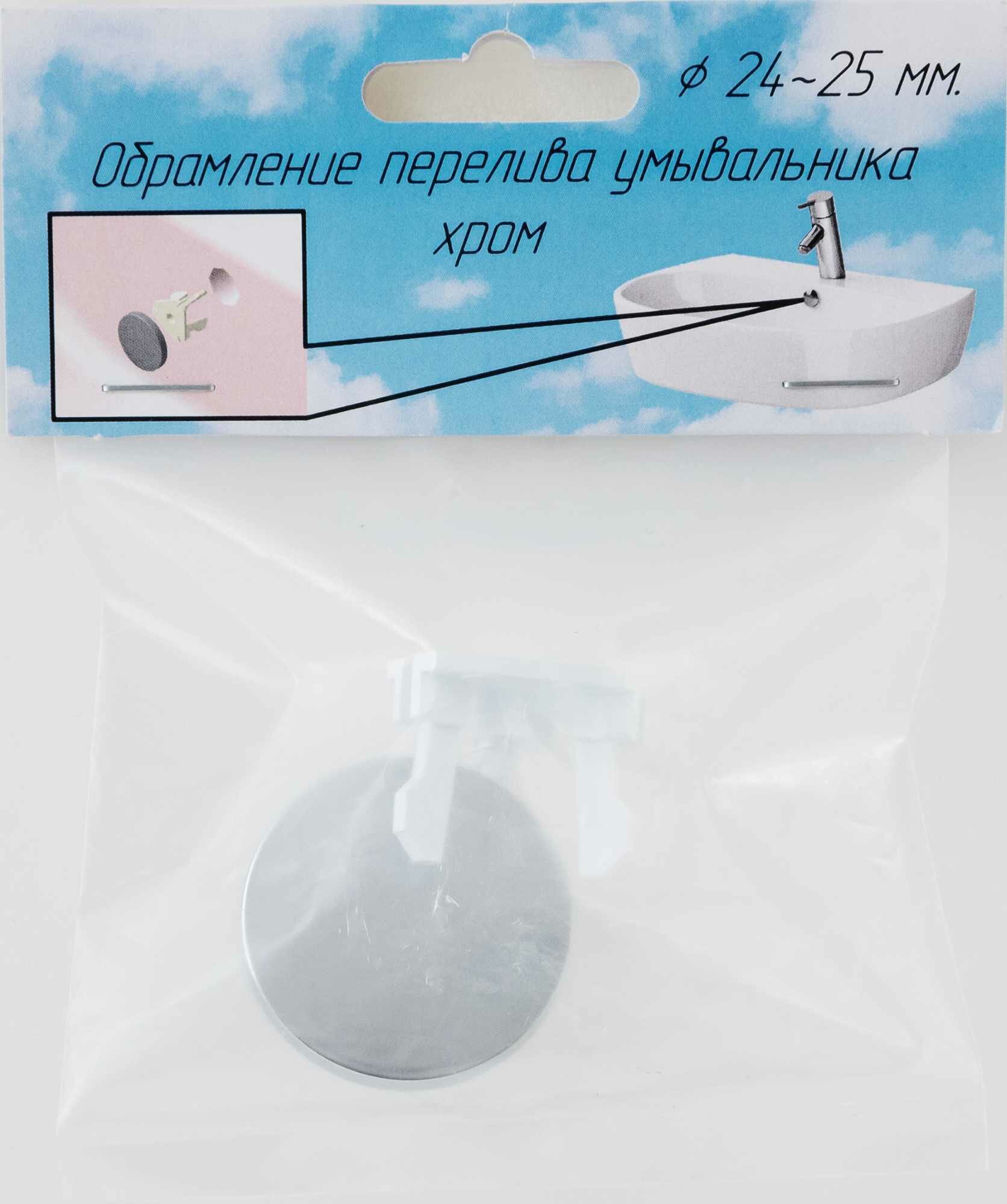 **Заглушка для перелива для раковины «Опус»** предназначена для блокировки сливного отверстия в раковине. Устанавливается просто, без применения специальных инструментов — правила указаны в инструкции, идущей в комплекте.